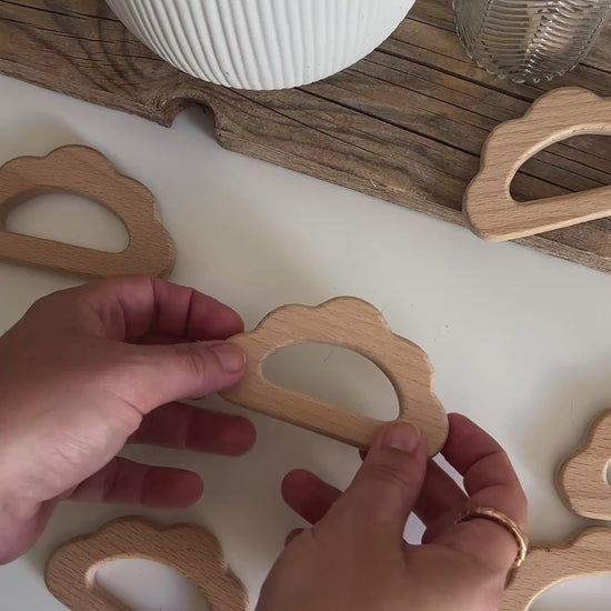 Réalisé avec un anneau en bois de hêtre brut non traité et un tressage en coton 100% naturel, cet anneau de dentition est parfaitement adapté aux petites mains. Sa forme nuage apporte une touche de douceur, tandis que le macramé offre une texture idéale pour soulager les gencives sensibles de bébé. Un accessoire à la fois utile, esthétique et rassurant pour les parents.