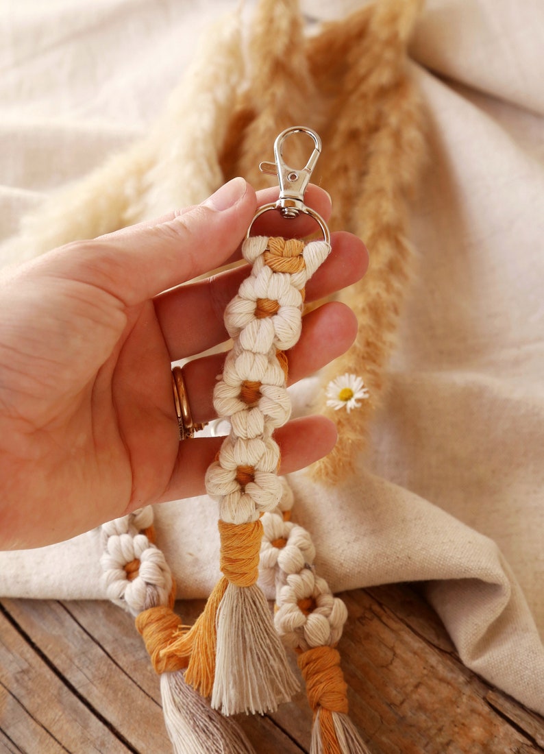 Sublimez votre trousseau de clĂ©s ou accessoirisez votre sac avec ces magnifiques porte-clĂ©s en forme de marguerites, une crĂ©ation artisanale colorĂ©e qui Ă©voque la douceur de lâĂ©tĂ©. Chaque piĂšce est unique, rĂ©alisĂ©e Ă la main en France, et sâaccompagne dâune touche bohĂšme qui fera sourire au quotidien !