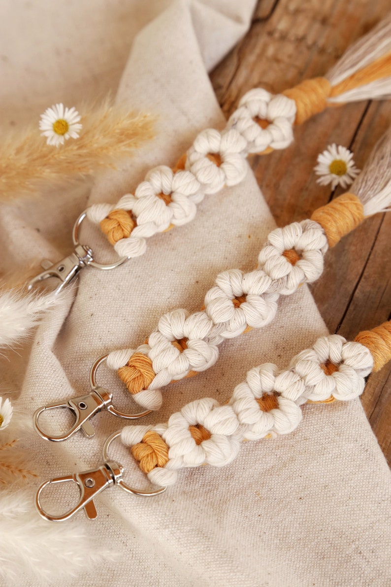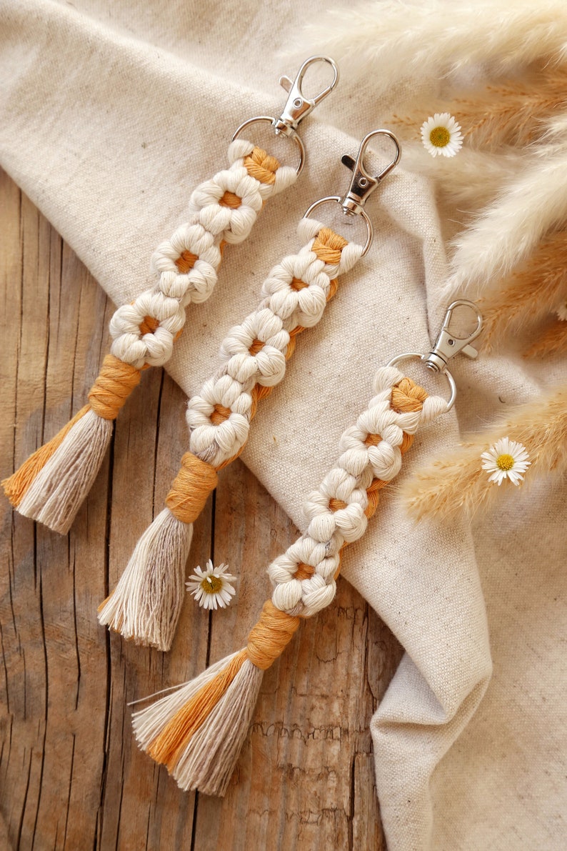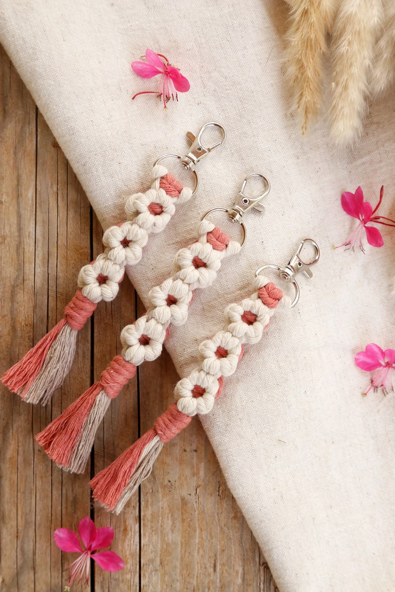 Ajoutez une touche de fraĂźcheur florale Ă vos accessoires avec ces ravissants porte-clĂ©s en macramĂ© en forme de marguerite, faits main par un petit crĂ©ateur français. Disponibles en deux couleurs Ă©clatantes â orange ou rose â ces porte-clĂ©s dĂ©licats sont parfaits pour apporter une note bohĂšme et estivale Ă vos clĂ©s, sacs ou pochettes.