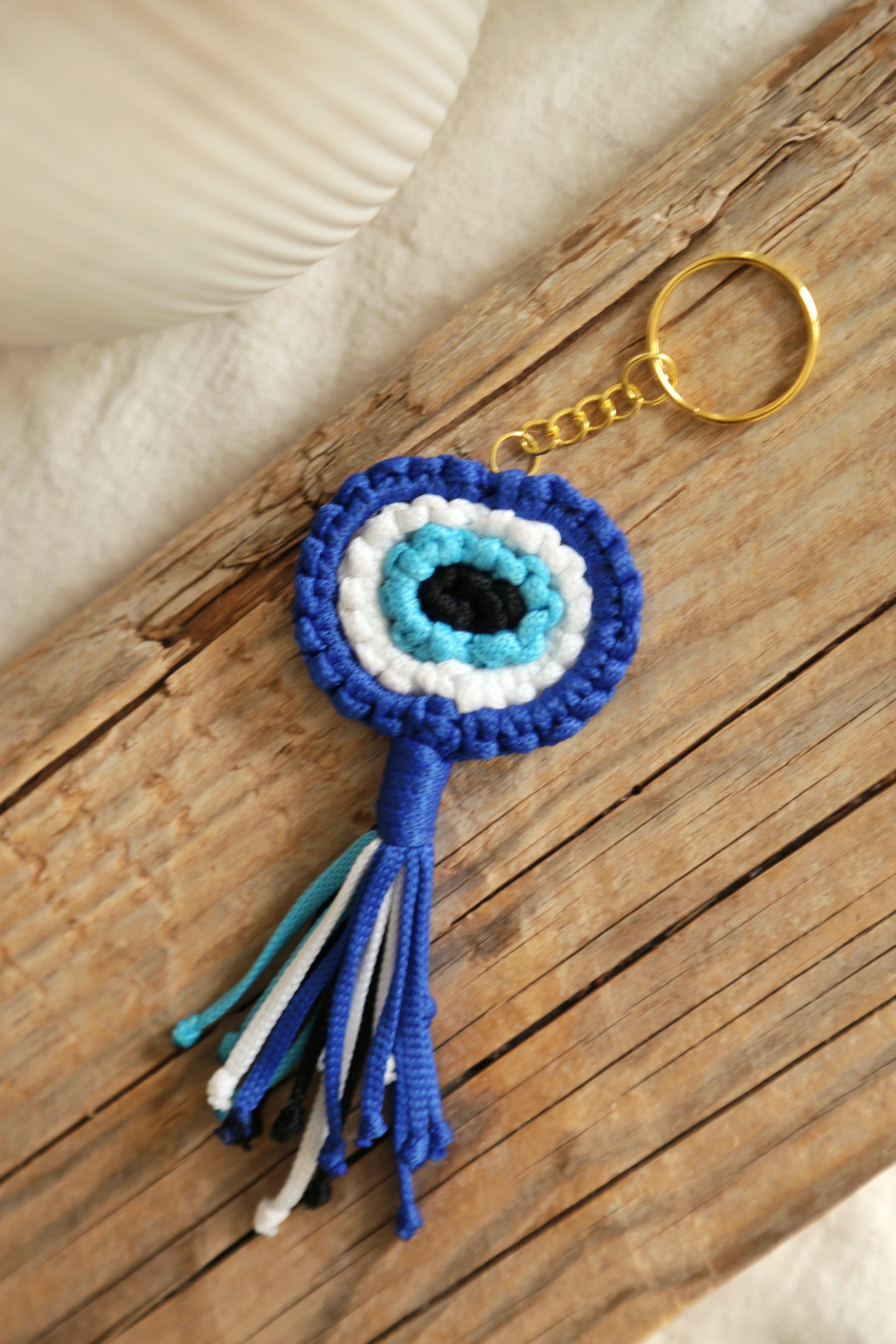Apportez une touche bohème et symbolique à votre quotidien avec ce porte-clé œil de protection en macramé, entièrement réalisé à la main. Inspiré du traditionnel mauvais œil, il est conçu comme une amulette protectrice, à offrir ou à garder près de soi.